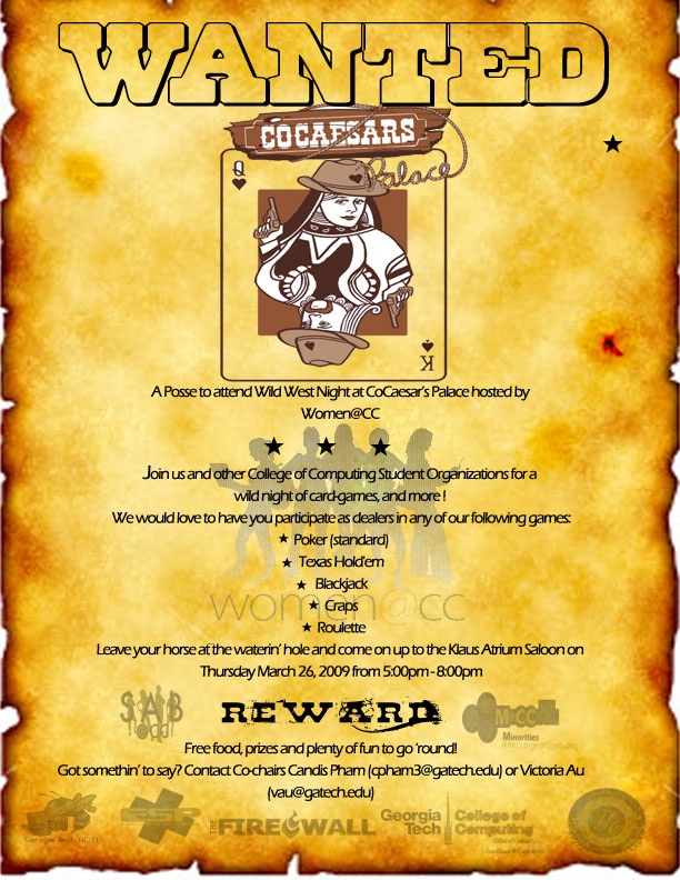 Hey girls, There's been maybe two people who have been by to pick up their Professor's letters. If you have time, please come by CCB 104b to pick them up and ask your professors. We learned last year that many people don't check their email over Spring Break and usual have things come up a few days before the event. After you've talked to your professor and they agree to be a dealer, don't forget to put their name at the appropriate time slot on the swiki (http://swiki.cc.gatech.edu:8080/WUAB/139). There are still LOTS of slots open. Thanks, and have a great Spring Break! -- Candis Pham B.S. Computational Media Women@CC- Chair Georgia Institute of Technology