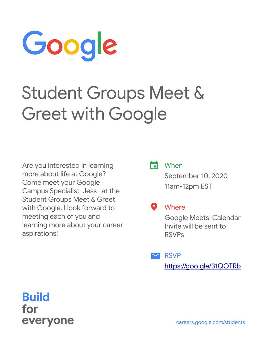 Google Student Groups Meet & Greet Tomorrow @ 11AM ET